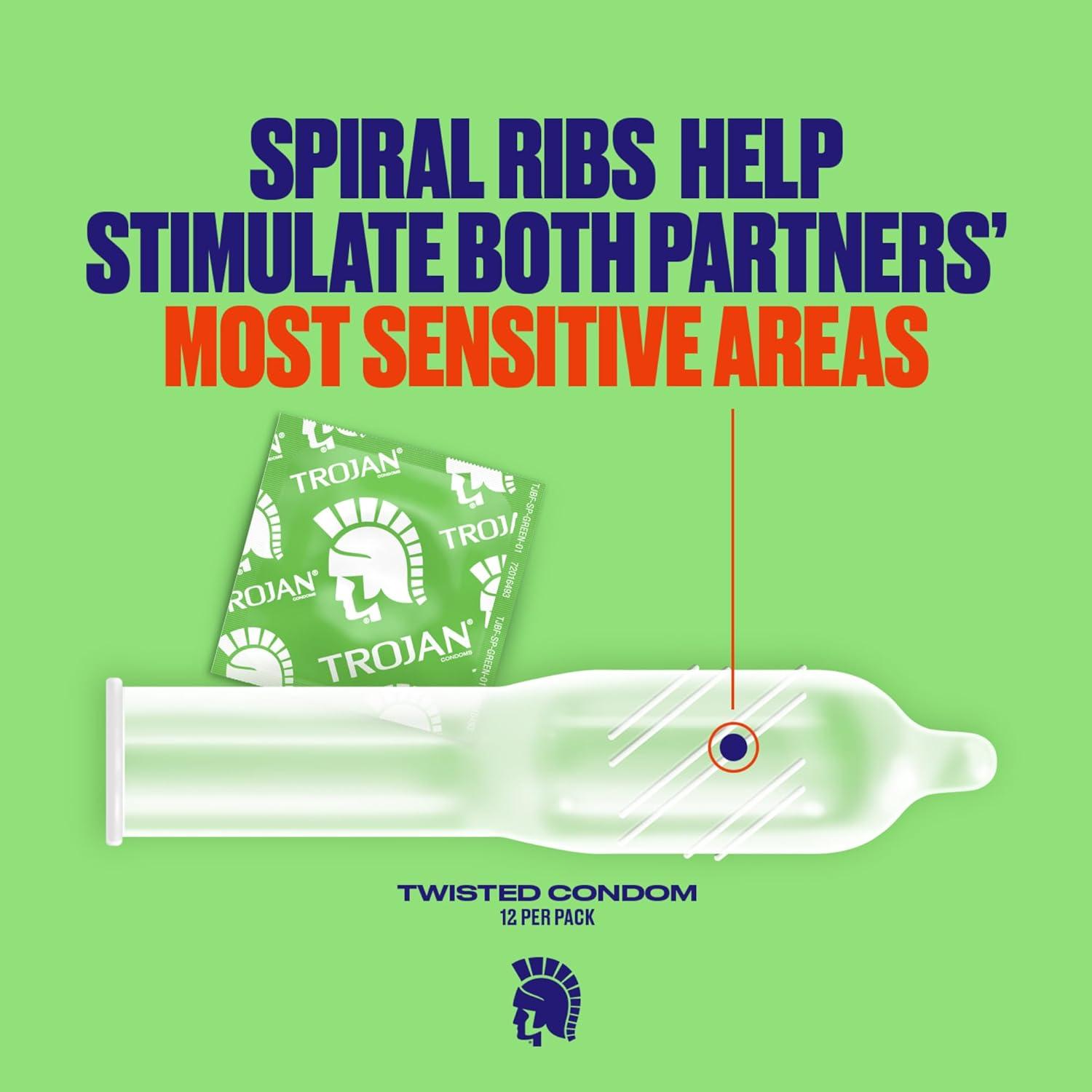 Trojan Pleasure Pack, Assorted Latex Lubricated Condoms for Men, Her Pleasure, Bareskin Studded, Ecstasy & Charged Varieties, 36 Count(Twisted Trojan Her Pleasure Intense and Warming)